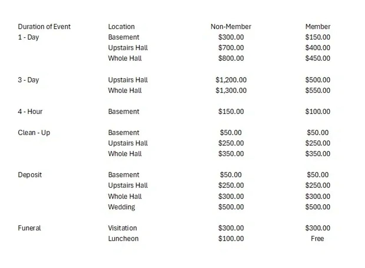 ***DUE TO EXCESSIVE CLEANUP, CONFETTI IS NOT ALLOWED IN THE KNIGHTS OF COLUMBUS HALL. WE APPRECIATE YOUR UNDERSTANDING.***